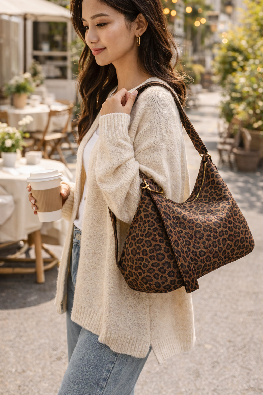 Designed to move with you, this leopard print hobo bag brings a relaxed yet stylish touch to your daily outfits — perfect for workdays, weekends, and everything in between.